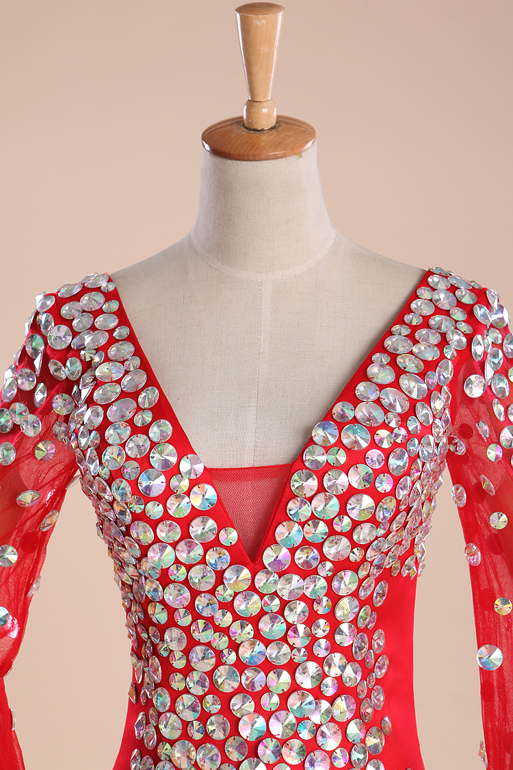 | Description: | Sexy Long Sleeve V -Neck Short Dress.Amazing Twinkling Crystals V-neck.Above Knee Cocktail Dress. | |