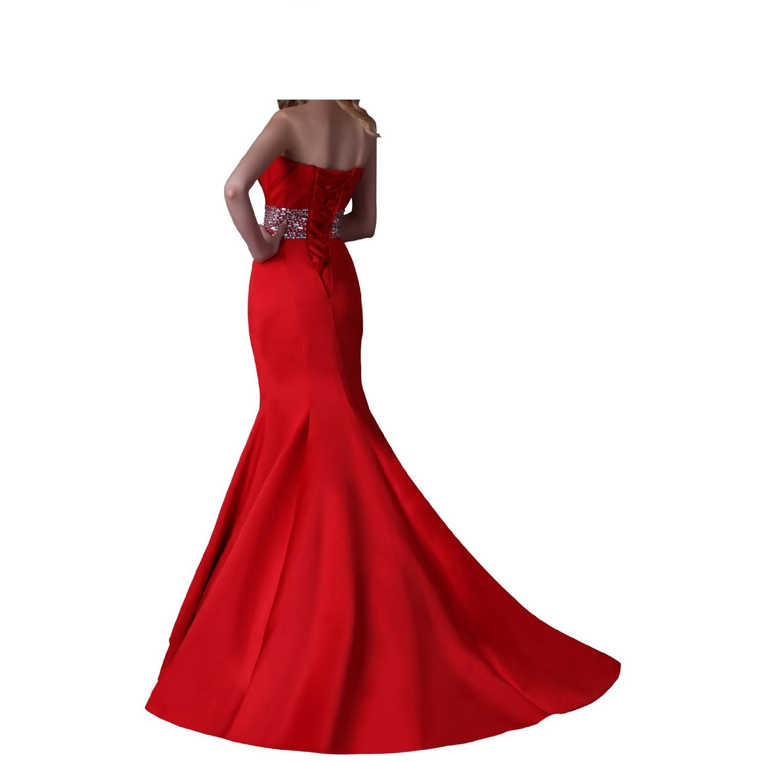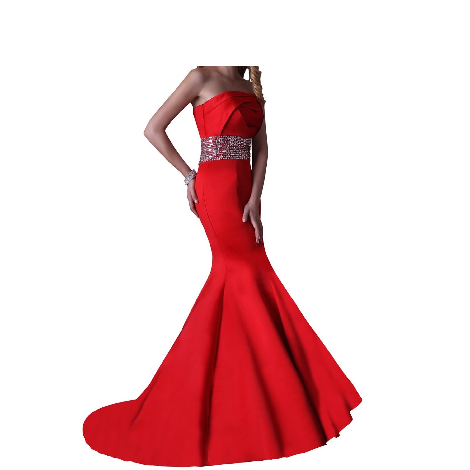 Description: * Item Material: Satin * Item Color: Red (As pictures show) * Item Description: You will definitely exude that romantic side of yours as you wear this strapless dress. It is patterned in a way that will outline your curve to flatter your femi